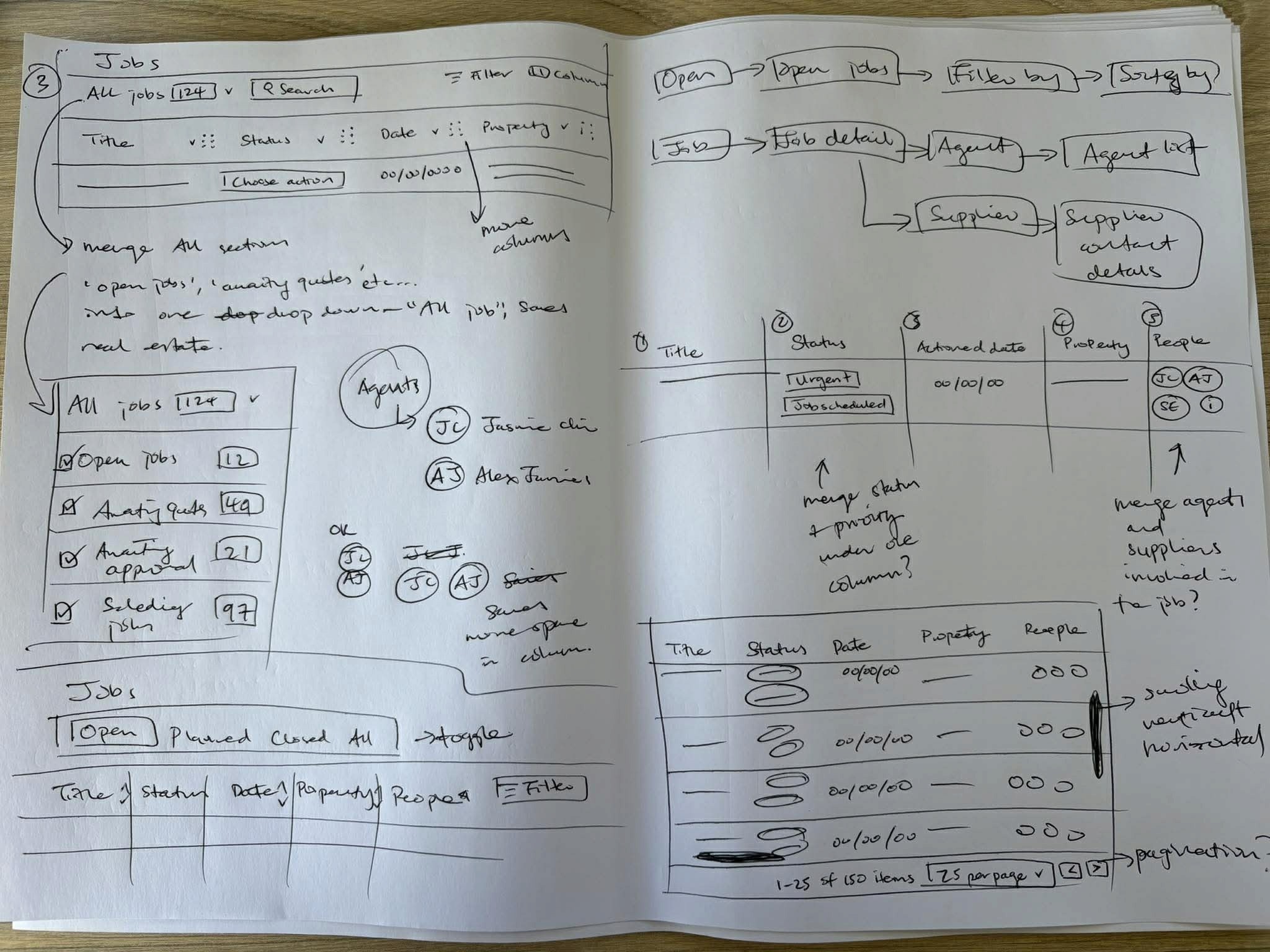 Explored layouts, table structures, and sorting options through sketches and wireframes, iterating with feedback to create a clear, efficient, and adaptable Jobs page.