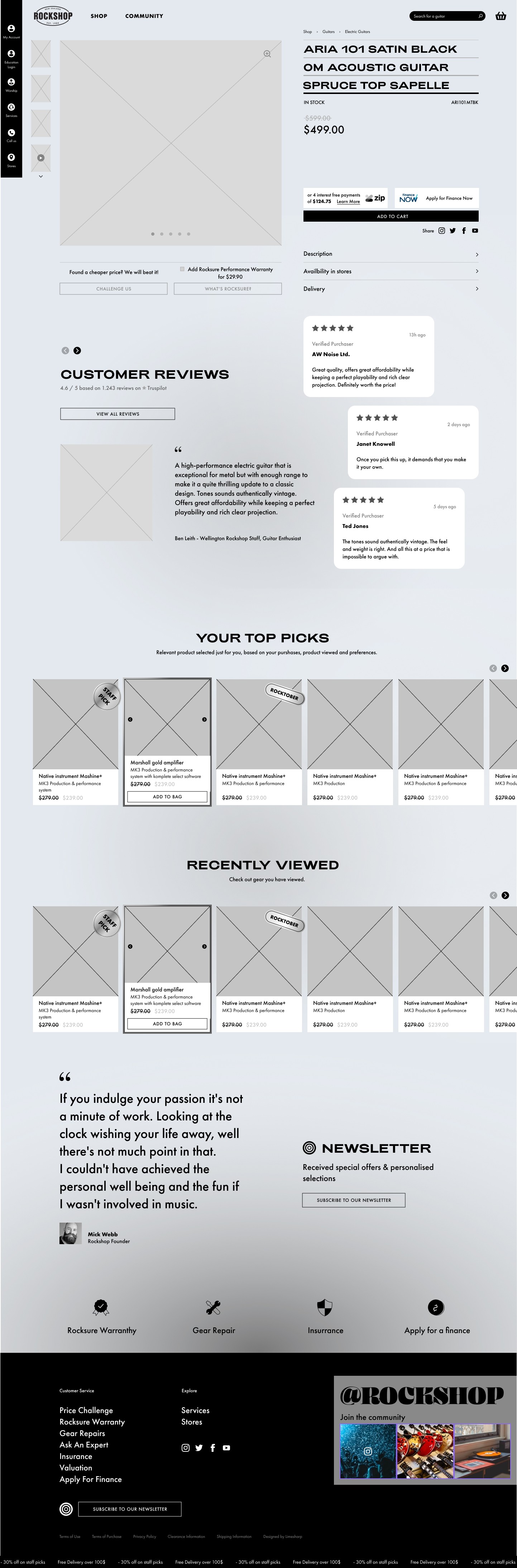 Led the UI design for the Rockshop product display page, using wireframes, prototypes, and feedback to improve clarity, navigation, and accessibility, creating an engaging and intuitive shopping experience for users.